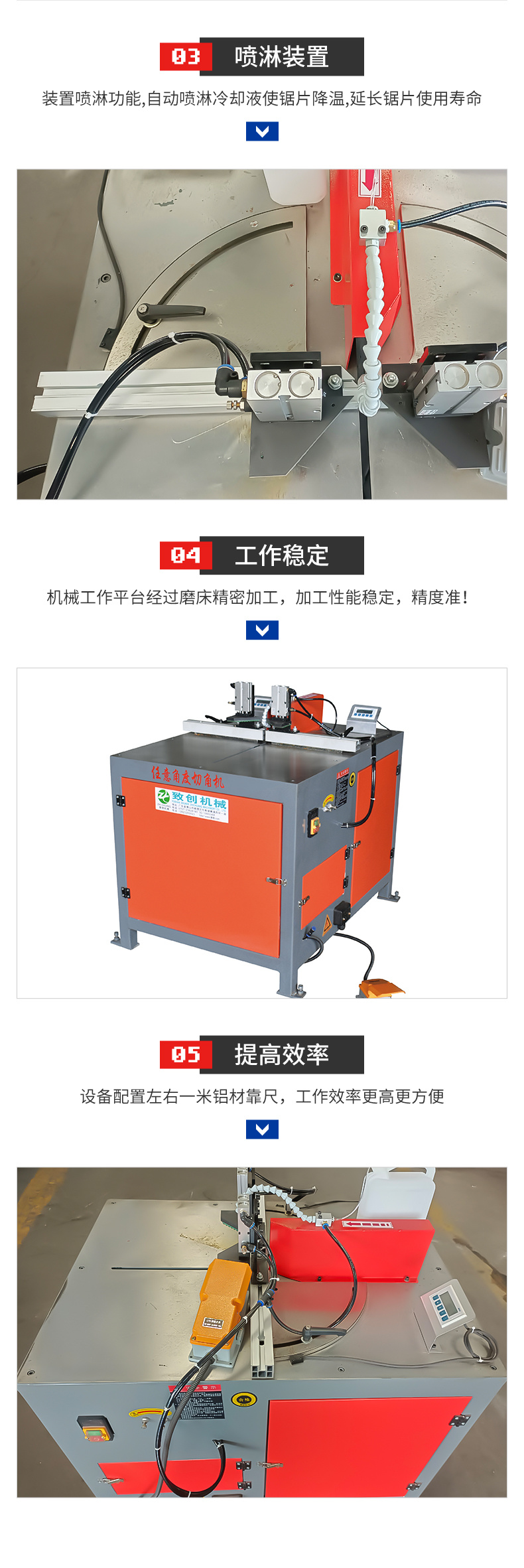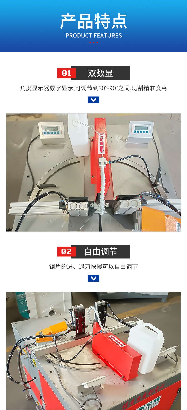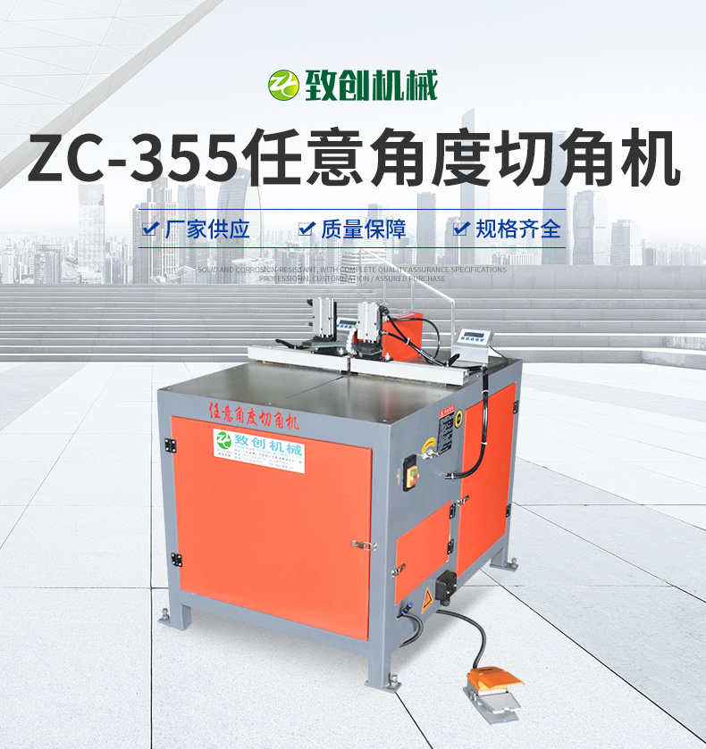 任意角度切角机,可用于15°-90°角的精准断料,设备可以多角度调节,两个数字显示表调节角度,同时它采用气动压料方式,保证型材压固且不崩边,一键启动锯片,脚踏进刀切割,锯片自动切割完后自动复位,切割精准,无毛刺无崩边,操作简便,工作效率高。