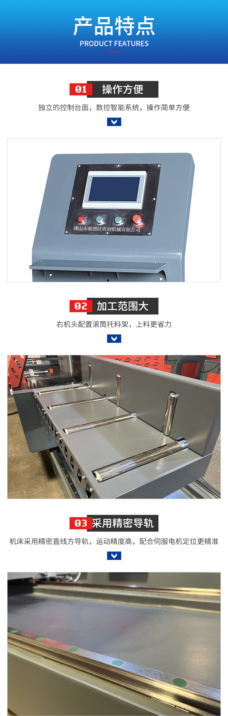 公司主要生产经营:工业铝材CNC加工中心、数控钻铣机、数控开料机、45度切角机、45度/90度数控双头锯,数控V型排切锯、数控断料锯、数控蜂窝板开料锯、数控门锁机、任意角度锯、木工圆锯机、精密推台锯等产品。