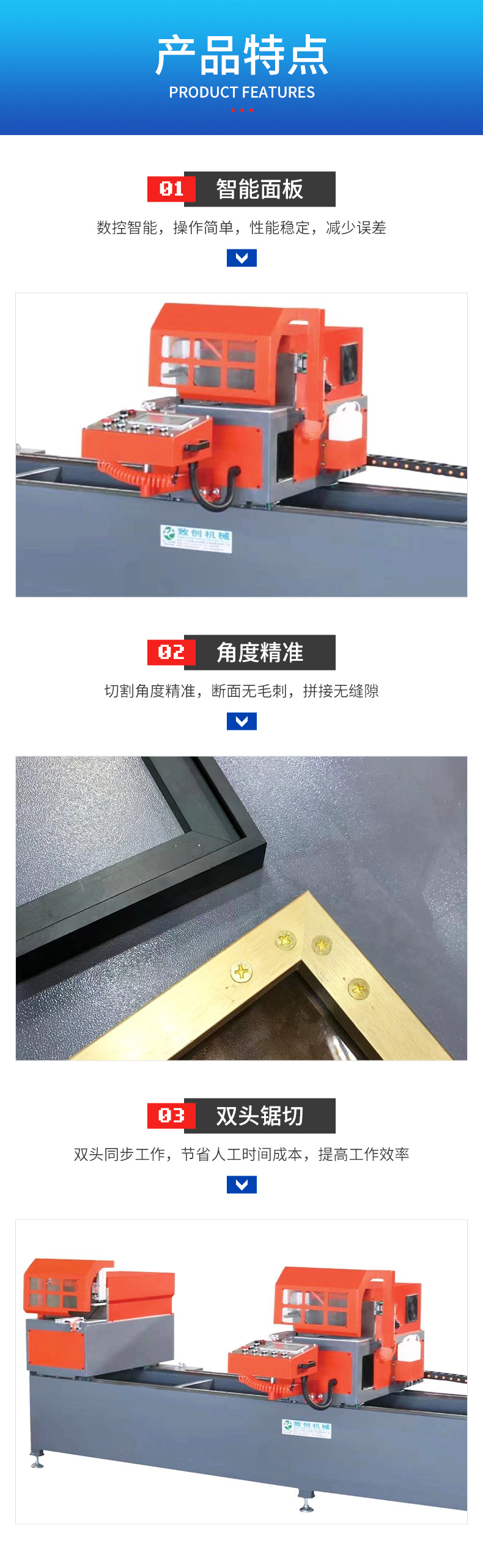 公司主要生产经营:工业铝材CNC加工中心、数控钻铣机、数控开料机、45度切角机、45度/90度数控双头锯,数控V型排切锯、数控断料锯、数控蜂窝板开料锯、数控门锁机、任意角度锯、木工圆锯机、精密推台锯等产品。